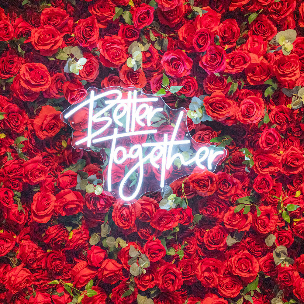 Funny Event made our wedding unforgettable! The flower wall and neon sign were a huge hit with guests. Everything was picture-perfect!